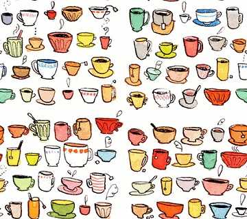 纹理图片1417-各种形态彩色手绘杯子无缝连接图案