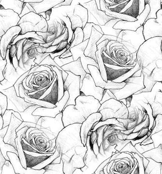纹理图片1467-素描玫瑰花无缝平铺背景图案