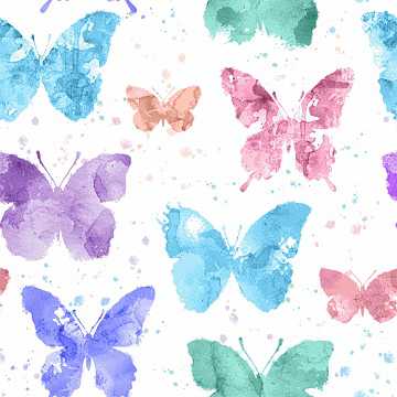 纹理图片1519-水粉多彩蝴蝶无缝平铺背景图案