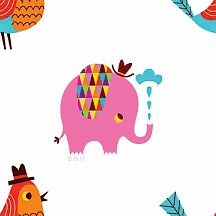 纹理图片1525-大象与小鸟卡通无缝平铺背景图案