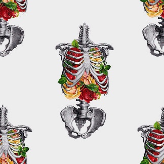 纹理图片1530-鲜花人骨躯壳无缝平铺背景图案