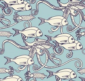 纹理图片1536-章鱼与鱼群无缝平铺背景图案