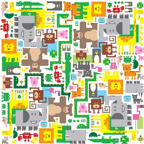 纹理图片1539-扁平风动物园插画