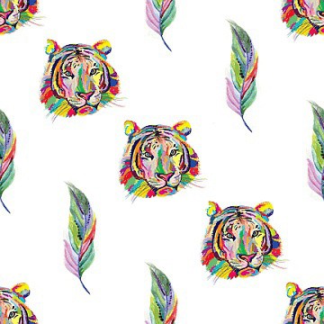 纹理图片1560-手绘彩色羽毛与虎头无缝平铺背景图案