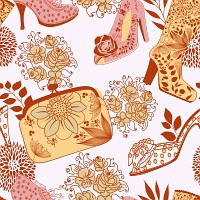 纹理图片1644-女性钱包与高跟鞋无缝平铺背景图案