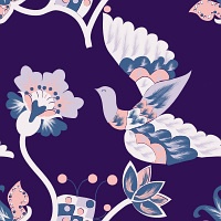 纹理图片1645-鸽子与花朵无缝平铺背景图案