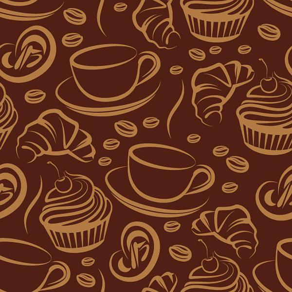 纹理图片1746-咖啡甜点简笔素描无缝平铺背景图案
