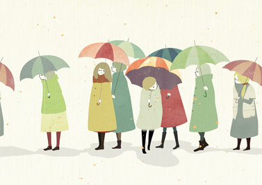 纹理图片1786-撑伞的女孩插画无缝平铺背景图案