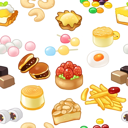 纹理图片1800-美味甜点食物无缝平铺背景图案