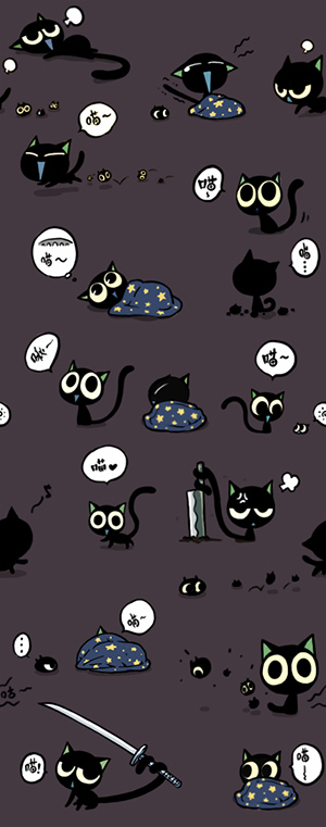 纹理图片1815-卡通黑猫的日常无缝平铺背景图片