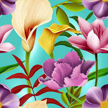 纹理图片1843-彩绘漂亮鲜花无缝平铺背景图片