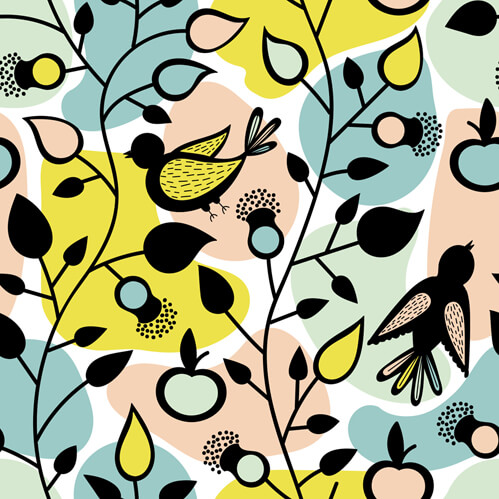 纹理图片1910-小鸟和漂亮的花朵、苹果无缝平铺背景图片