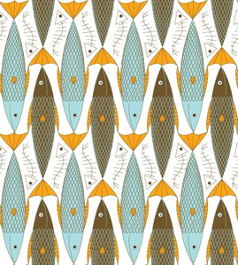 纹理图片2063-鱼与鱼刺绘图无缝平铺背景图片