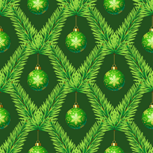 嫩绿松枝与烫金绿球圣诞氛围元素无缝平铺背景图片-纹理图片2090