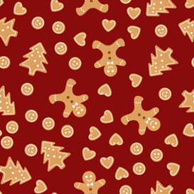 烘焙圣诞树饼干与姜饼小人无缝平铺背景图片-纹理图片2096