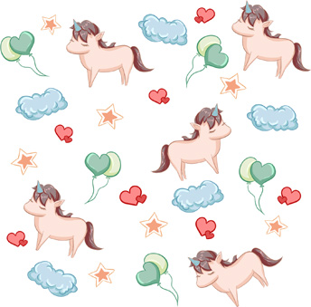 可爱少女风独角兽爱心气球无缝平铺背景图片-纹理图片2298