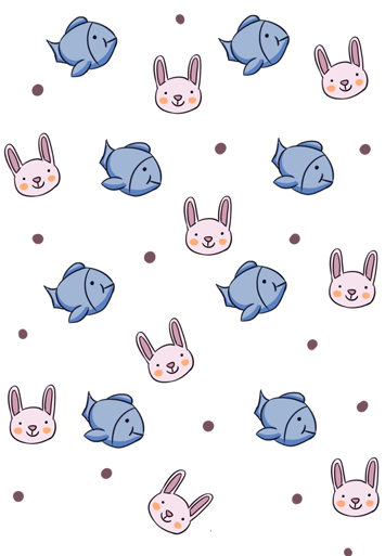 手绘卡通兔子头&蓝色的鱼无缝平铺背景图片-纹理图片2328
