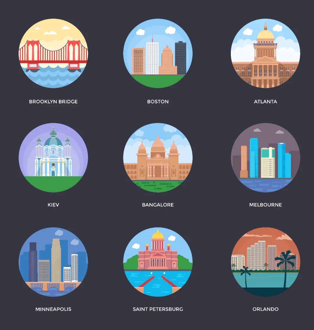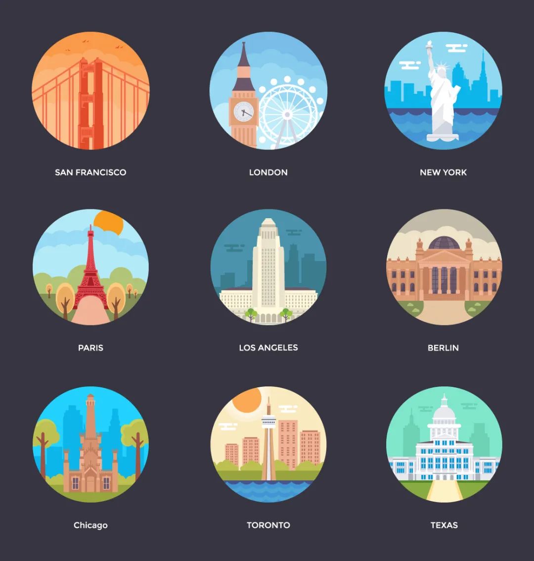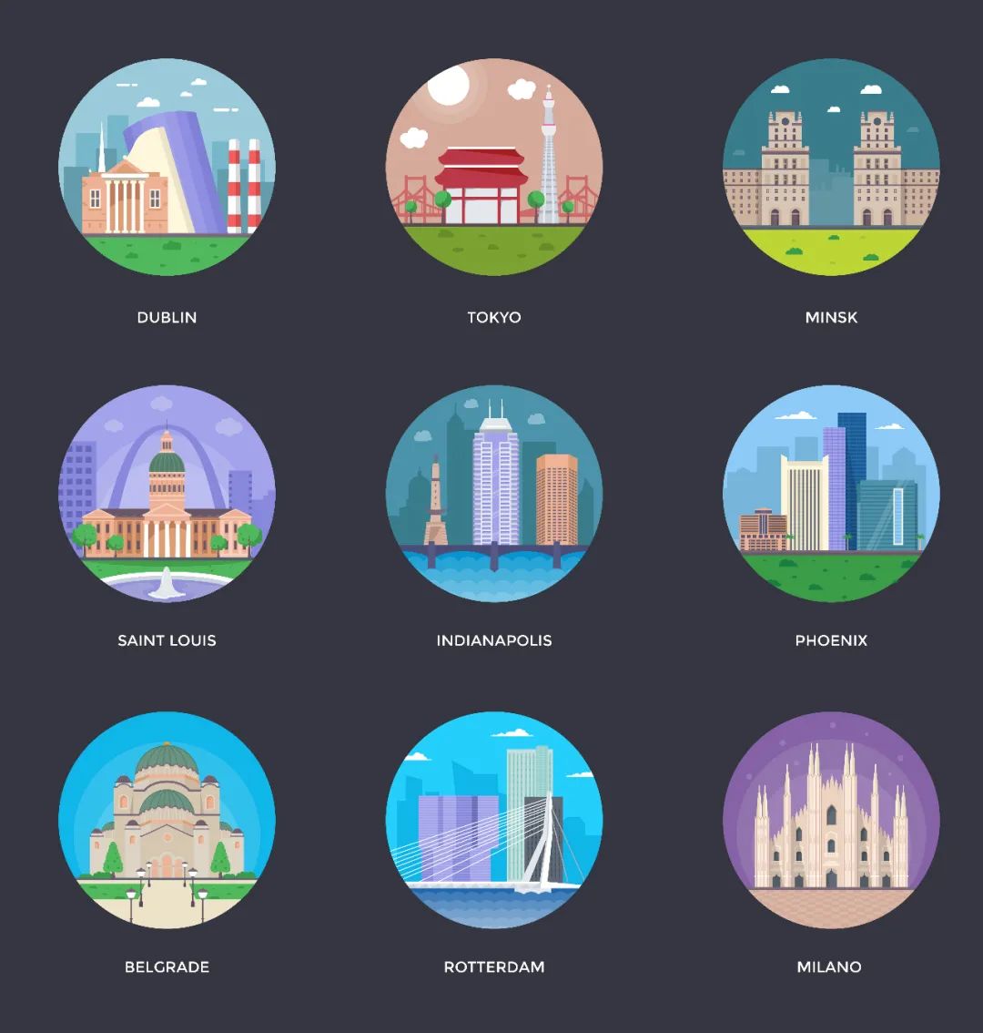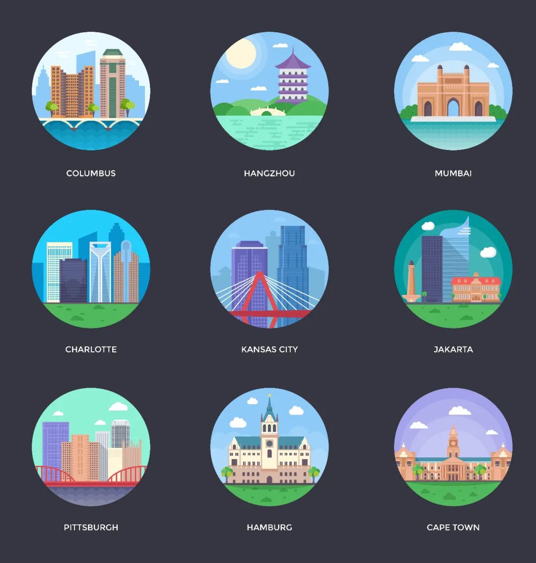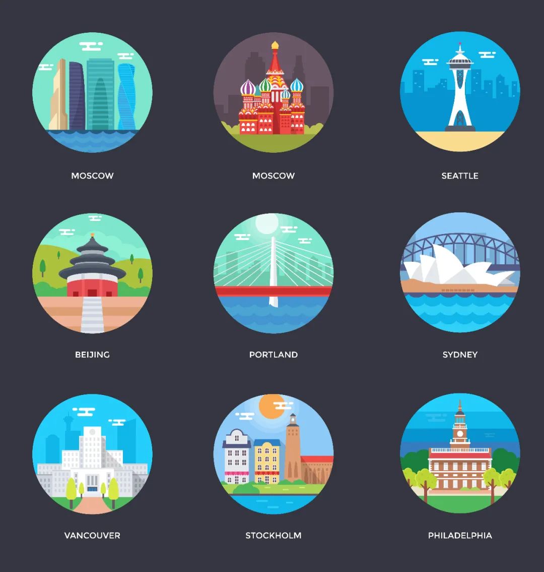 今天为大家分享的是128个世界主要城市矢量插画图形打包下载,希望大家喜欢,享用吧!包含世界著名城市的平面图标集,这些城市因其在一个领域或其他领域的竞争力而闻名,这些领域包括电力,金融,音乐,时尚,工业,经济等。这个大都市城市的彩色创意平面矢量图标包是旅游行业满足其客户需求的新创意解决方案。它不仅可以单独用于旅行项目,而且对于围绕这个概念的所有设计任务都适用shi。