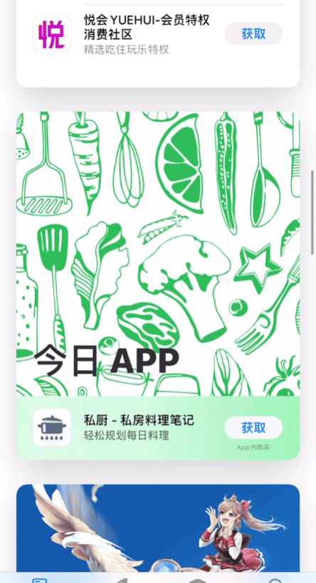 App Store 的中的页面切换动效,采用的是从中心向四周收放的方式,最大程度的减少页面跳转带来的时间损耗,视觉效果上也更加连贯。
