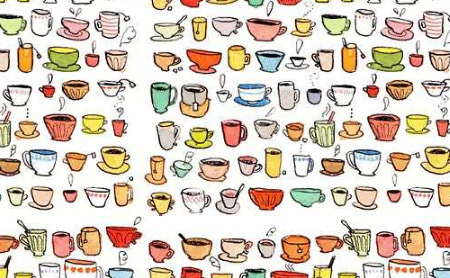 纹理图片1417-各种形态彩色手绘杯子无缝连接图案