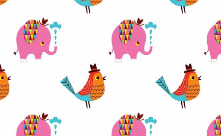 纹理图片1525-大象与小鸟卡通无缝平铺背景图案