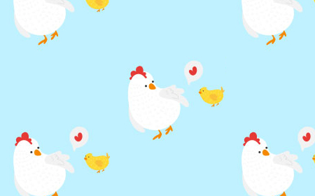 有爱的母鸡与小鸡无缝平铺背景图片-纹理图片2299